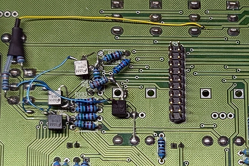 PCB1 contains the controls and related passive components. You can see the 10 mod wires on PCB1 and the crossed resistors.