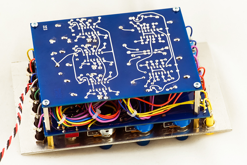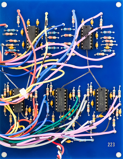 The original 223 was hand wired on a prototype board. MEMS designed a motherboard for all the controls and switches. There are a lot of wires connecting to the motherboard.