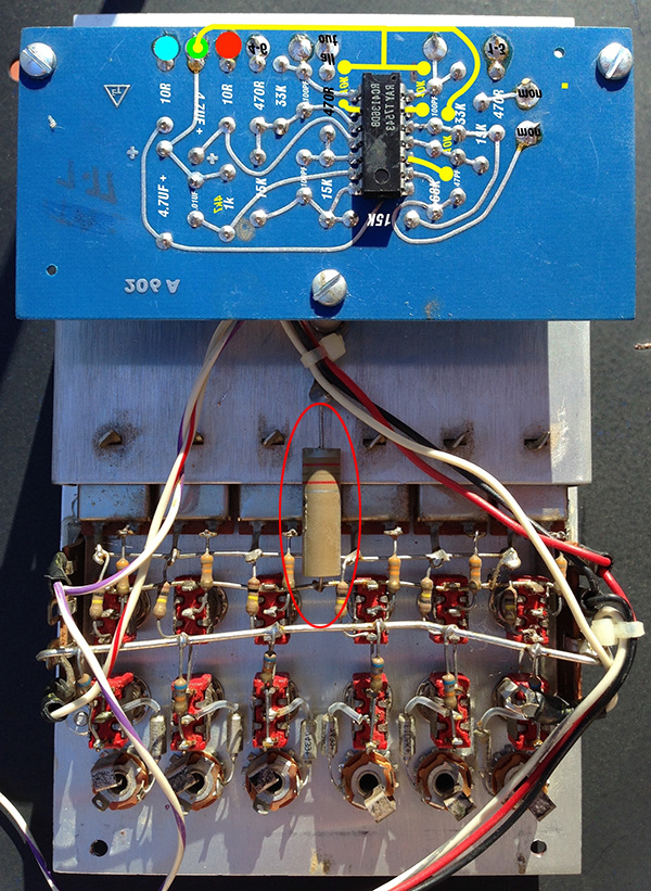 Don used this same 2R2 resistor on the 206 Dual Mixer (circled in red).