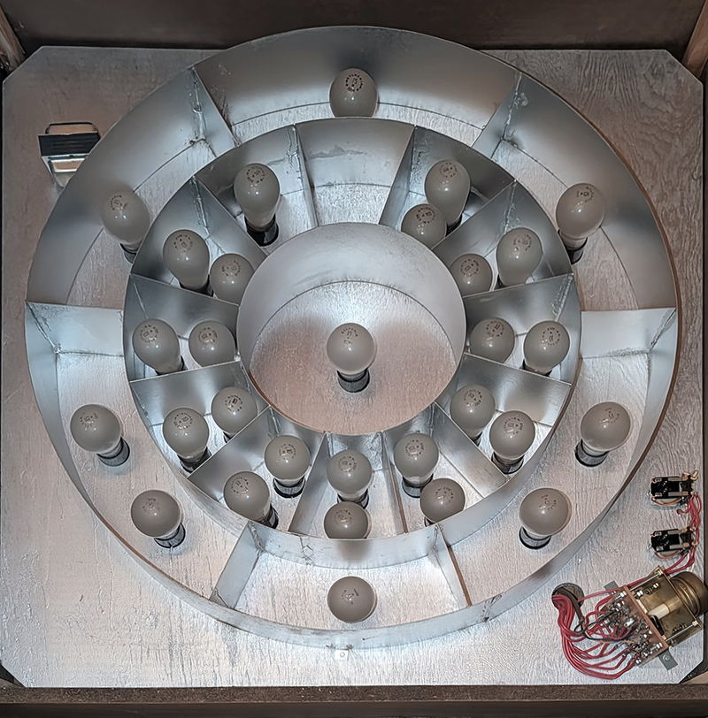 Inside it used twenty-nine 10 watt incandescent lamps.