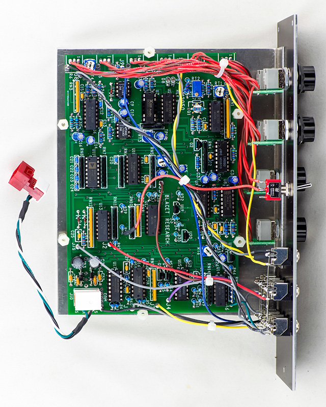 This customer wanted a Blacet Time Machine in an Aries format. I needed to use small knobs and designed the panel to match the layout of other similar Aries modules. I kept the font for the Time Machine legend and MOTM graphics for the switch. This is a FrontPanelExpress printed panel.