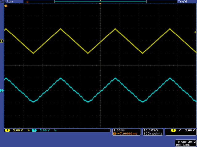 This example is the same setup except I have set In 1 and In 9 to zero to produce the notch at the peaks of the triangle.