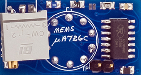 Several of Don's VCO designs use the ľA726 temperature controlled exponential pair. These are now rare and hard to find. MEMS designed a replacer PCB which works in all of their modules. It consists of a AS3046 transistor array with transistors used for the exponential pair, chip temperature sensor, and heater.