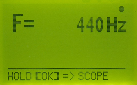 This image shows frequency mode and is very useful for tuning VCOs (remember the input voltage is limited to 0 to 5 volts).