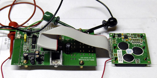 I built an LCD oscilloscope module using the JYE Tech 06201 digital storage oscilloscope purchased from NKC Electronics. I purchased the 06202KP kit with all SMT parts soldered but the LCD and all through hole parts unsoldered. I extended the LCD using a ribbon cable so I could move it above the PCB which I rotated 90º to fit in a 2U panel.