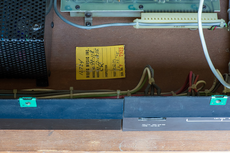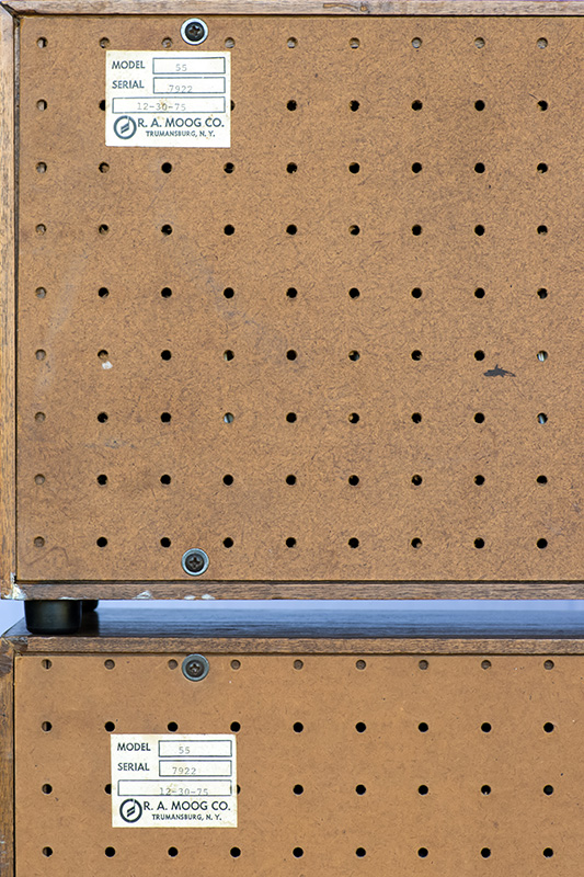 Both cabinets have serial number labels with matching numbers on the rear covers. This System 55 synthesizer was completed on December 30, 1975. Note the label has the old logo.
