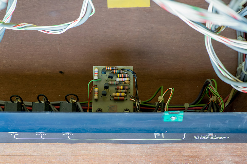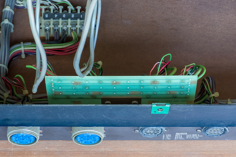 There is a PCB used to distribute the various CV wiring to the console panels and the rear connections. Behind the panel is another distribution strip for power.