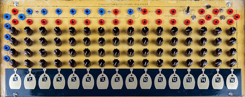 The lower module was very poorly made, had a number of modifications, and several modules did not function. I completely rebuilt the lower panel, repaired modules, replaced intermittent potentiometers, removed a number of modifications, and rewired about half the panel. This panel also includes the Noise Generator-S&H module and is wired to the banana jacks and switch on the far left. After this photo was taken I reused the two plug holes on the far left for the white and pink noise and added VC attenuators to the Wave Multipliers on the right as can be seen in the system photo.
